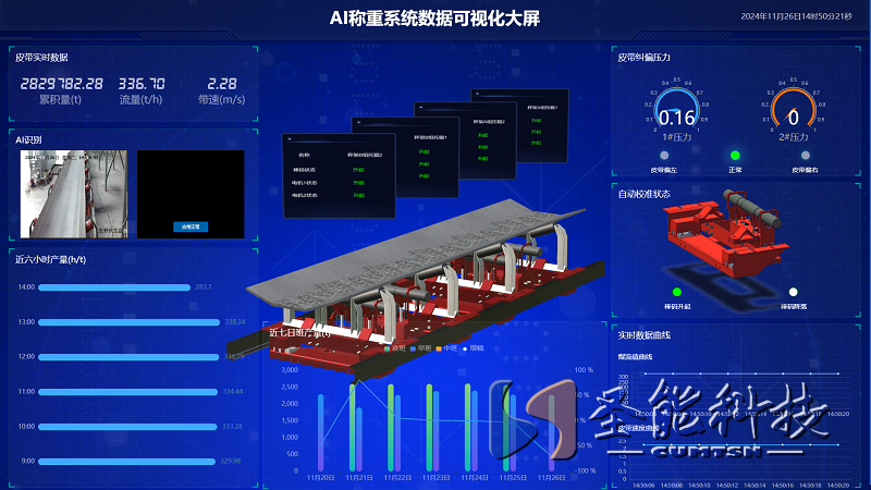l 自动纠偏和在线校准:圣能科技先进的皮带秤称重系统可配置液压神经纠偏系统,实现皮带自动精准纠偏,避免反复停机纠偏和调零;通过集成标准棒码和智能校准算法,实现不停机、不停产实时校准,解决人工校准停机、工作量大的问题。