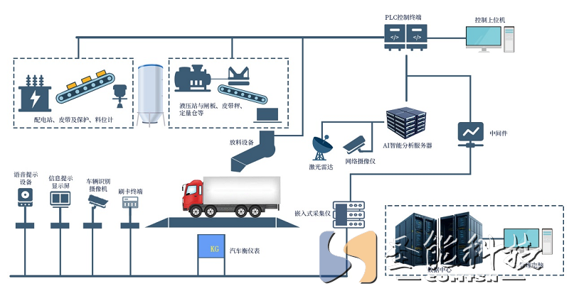激光扫描仪/雷达/视频AI识别: 自动识别车辆到位、检测车厢位置、长度、宽度,甚至实时监测车厢内物料堆积高度和形状。